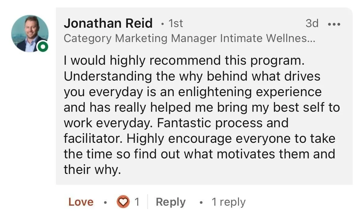"Such an incredible process! Finding my why was such a light bulb moment!"